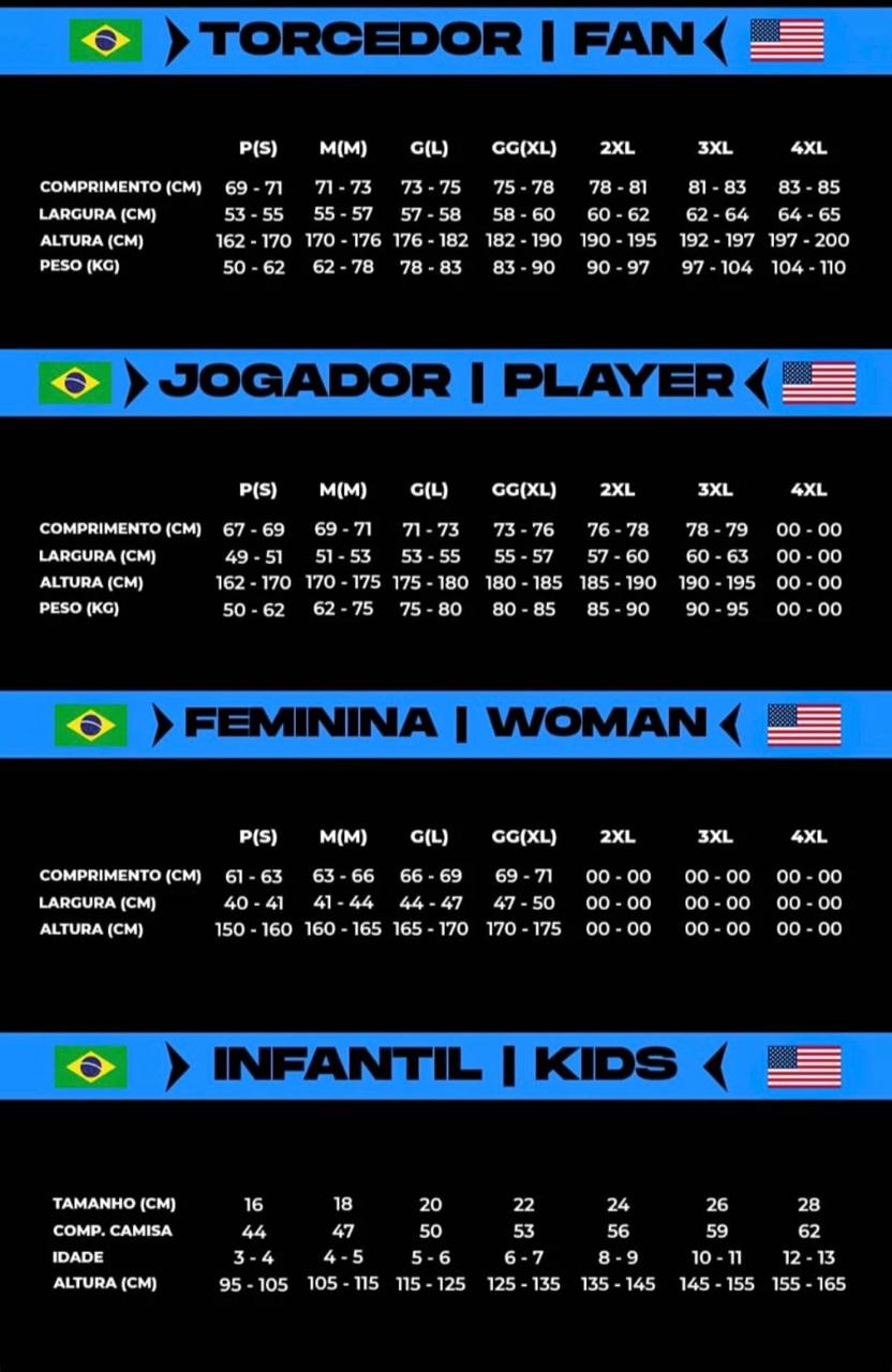 Válido para este produto e todos da categoria: Camisa -> Torcedor, Camisa -> Torcedor -> Masculina, Camisa -> Torcedor -> Femininas.